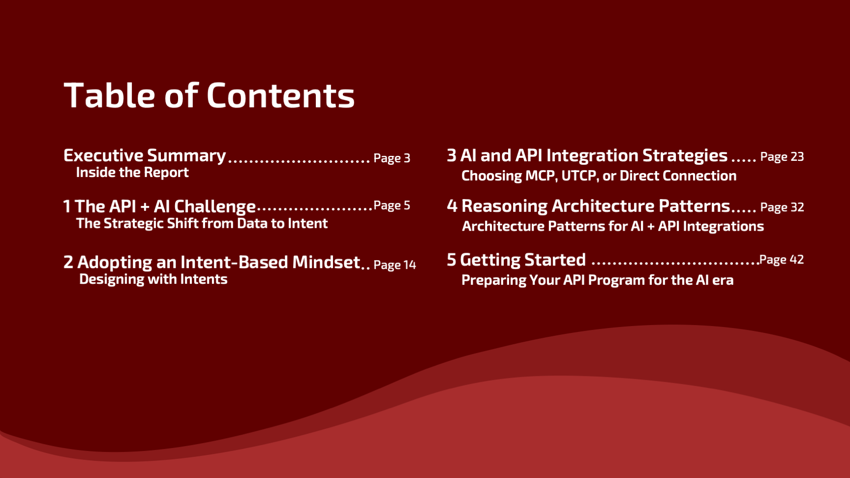 - The intent-based API pattern: what it is, when to use it, and how it maps to MCP tool definitions.